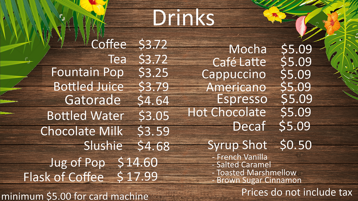 Our Jungle Cafe serves a wide variety of snacks to full meals, any day of the week. If you have any questions about our menu please give us a call @ 604 914 2518